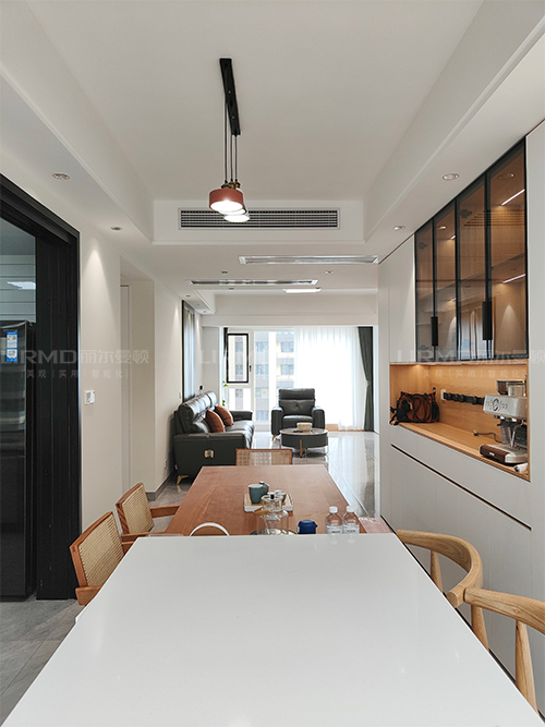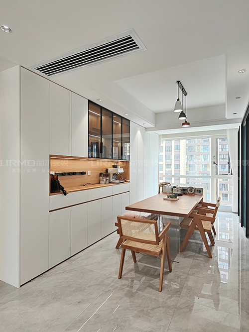 餐廳與生活陽臺打通,餐邊柜+陽臺柜融為一體,