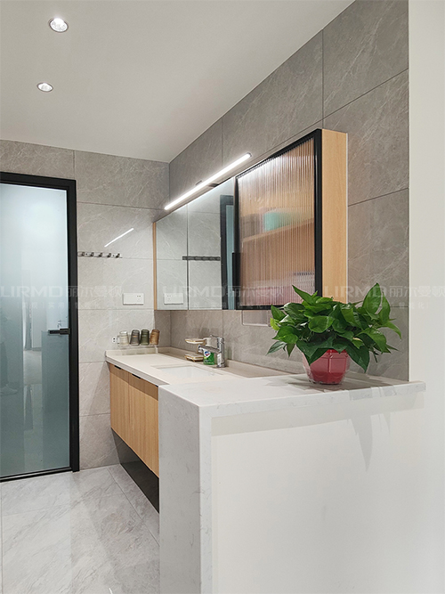洗漱柜半墻設(shè)計真的顯大又好看,鏡柜還可收納,減少洗手臺的負(fù)擔(dān)
