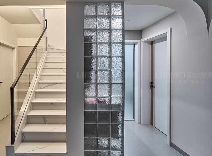 原墻體拆除用玻璃磚做隔斷,透光不透人,具有設計感。