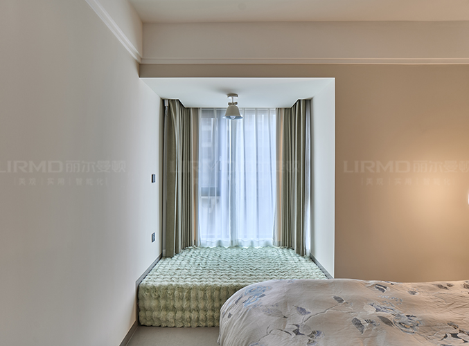 飄窗改造后可以做成休閑區,床頭燈以及吊燈極具設計感,傳遞出柔和自然的感覺。