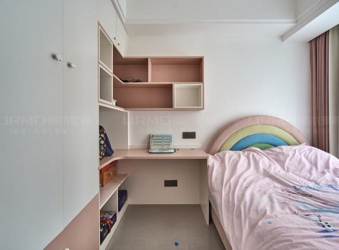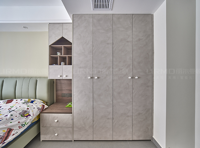 采用衣柜書桌一體設計,既能儲物又能學習。