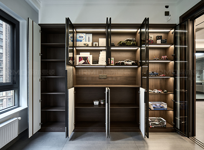 整墻柜子設(shè)計,收納和展示一體,美觀大氣。
