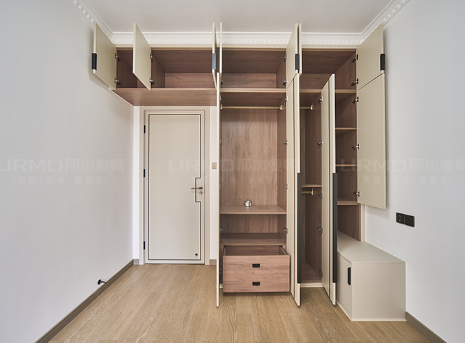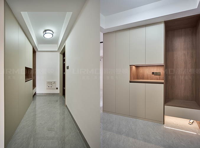 18mm厚杉木芯板,淺色柜門(mén)加深色柜體的碰撞,視覺(jué)效果更好,下方懸空設(shè)計(jì),好放置鞋子,