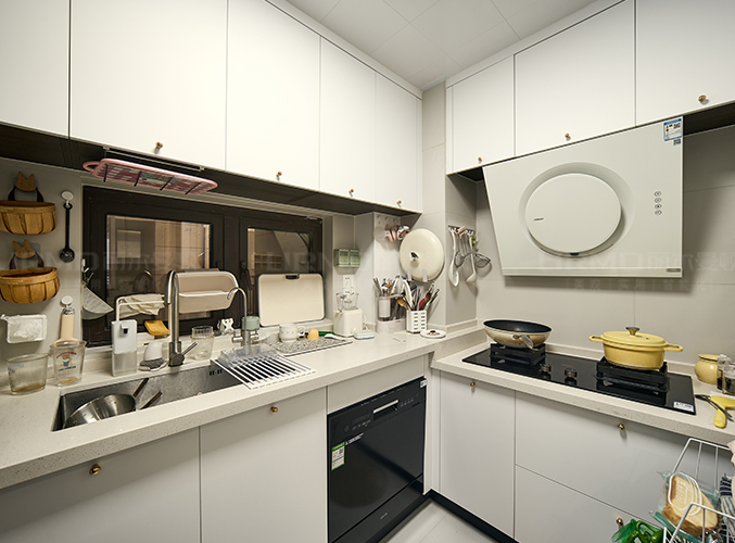 18mm厚杉木芯板,入戶與廚房用滑軌玻璃門隔開,空間更通透,