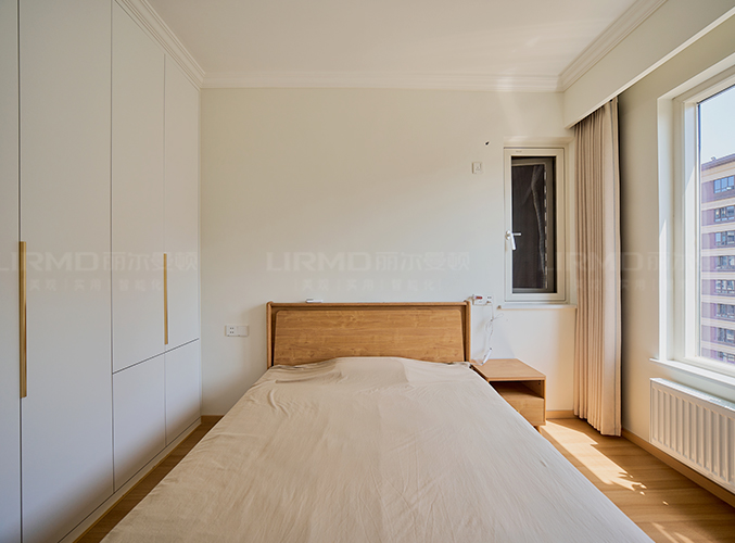 臥室整體原木+奶白,實(shí)木柜體搭配PET膚感柜門,一門到頂,質(zhì)感超不錯,