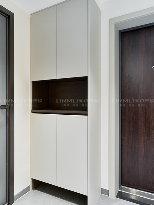 陽臺兩側(cè)做儲物柜,于背景一體設(shè)計,美觀又實用。
