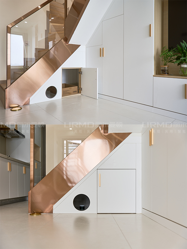 全房共定制了5個柜子,柜體采用足18厚杉木芯板,柜門采用LSB板PET膚感柜門,一門到頂,五金使用原裝進口的百隆五金