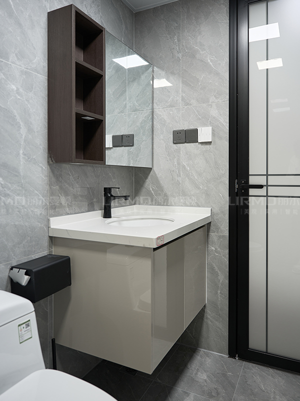 全房共定制了10個柜子,柜體采用足18厚杉木芯板,柜門采用LSB板PET膚感柜門,一門到頂,五金使用原裝進口的百隆五金