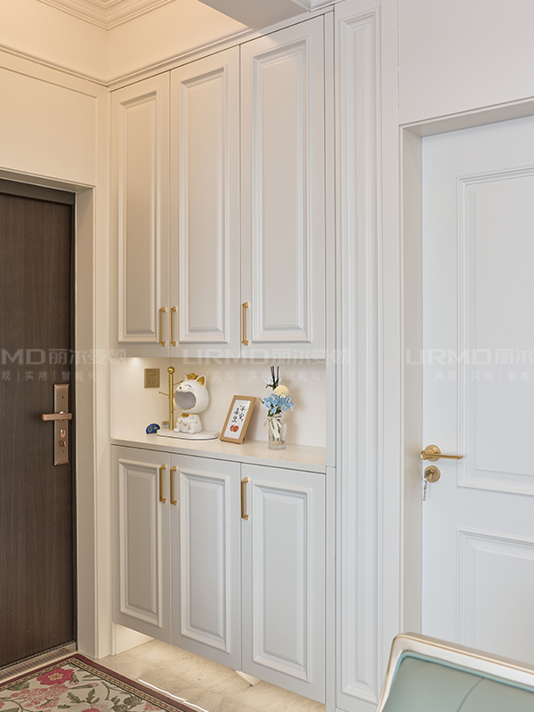 玄關柜+餐邊柜+嵌入式冰箱柜,櫥柜+沙發(fā)背景墻,主臥室滿墻衣柜+次臥衣柜