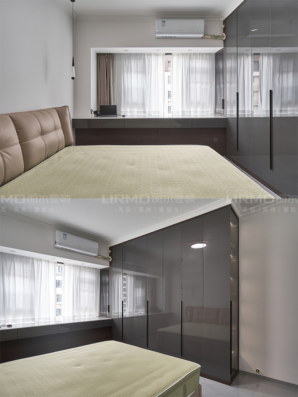 柜體采用足18厚杉木芯板,柜門采用LSB板PET膚感柜門,一門到頂,五金使用原裝進口的百隆五金