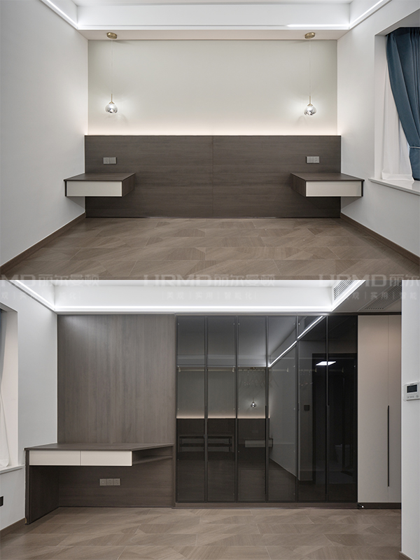 書柜收納柜、懸浮效果書桌、主臥衣柜、主臥梳妝臺、兩個主臥挑空床頭柜、次臥衣柜、