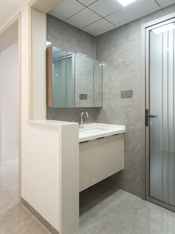 書房超長書桌、書房書柜、定制浴室柜,以及同色墻板、同色到頂房門)