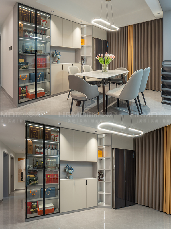 全屋定制:做了15個柜子(入戶到頂大鞋柜、整版餐邊柜、到頂玻璃收納柜、冰箱內(nèi)嵌柜、