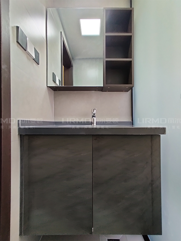 整體使用煙熏尤加利+超晶巖板灰的結合,高級簡潔又耐看