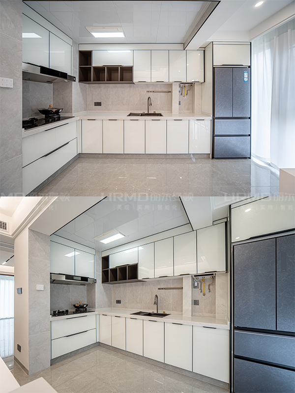 全屋高端定制:柜體板材18厚杉木實(shí)芯板,柜門有pet膚感、高光、超晶、五金使用原裝進(jìn)口奧地利百隆五金