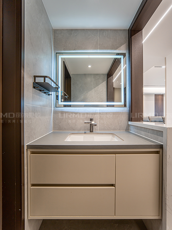 整體以灰色系為主,整個(gè)空間彰顯出低調(diào)的高級感