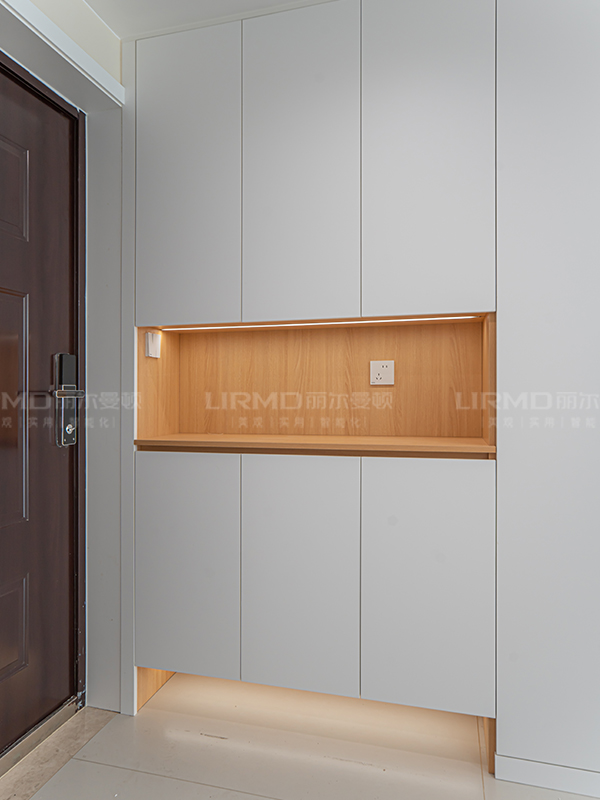 開放式入戶柜加上玻璃柜門的設計,增加層次感