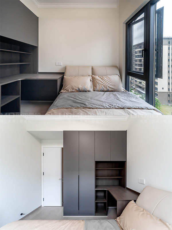 統(tǒng)一配置超高房門,L型櫥柜均采用5大系統(tǒng)定制,高低臺(tái)面滿足人體工程學(xué)設(shè)計(jì)