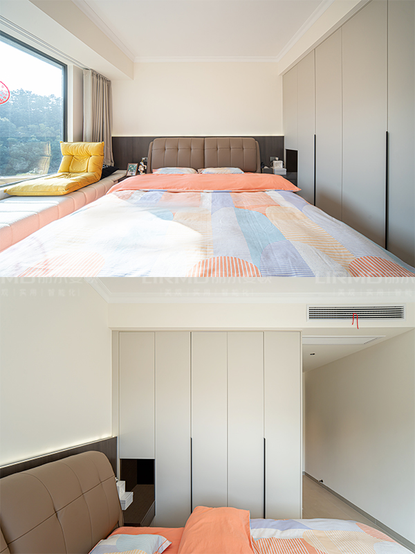 整體運(yùn)用煙熏尤加利+象牙灰,加上暖色系家具和掛畫,氛圍感十足