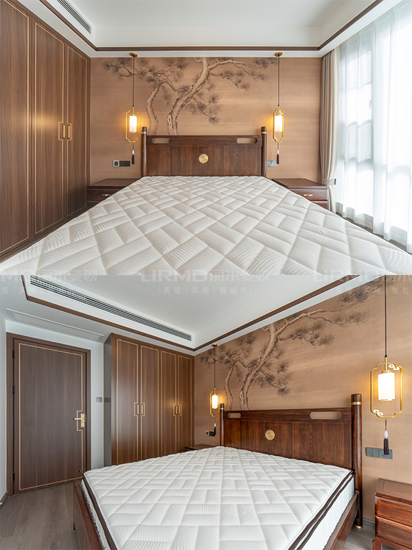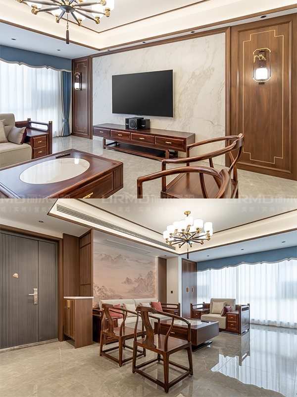 客廳和臥室都采用了水墨畫中式背景墻,展示出濃濃的東方韻味