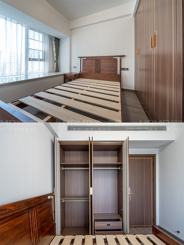 長沙靠譜裝修公司,長沙靠譜全屋定制,臥室衣柜加梳妝臺,新中式風,