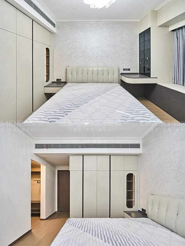 主臥衣帽間壁掛系統簡約美觀,主臥飄窗梳妝辦公兩不誤