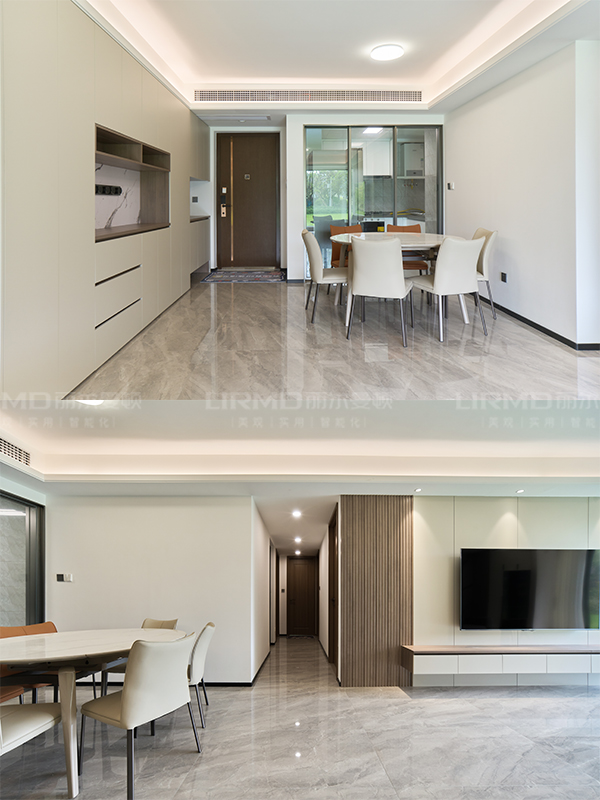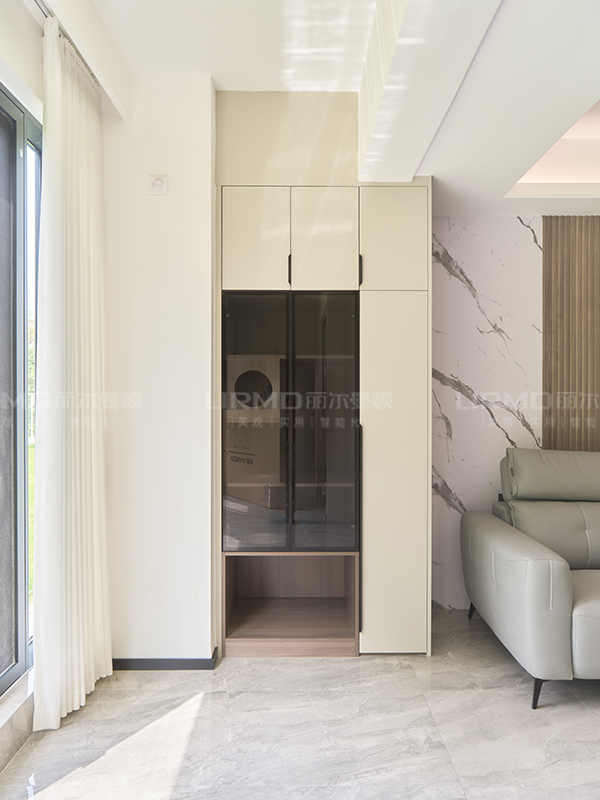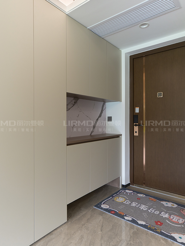 柜.墻.門一體化,從柜到墻再到門的連貫延伸,完美呈現(xiàn)出簡潔大氣的空間感