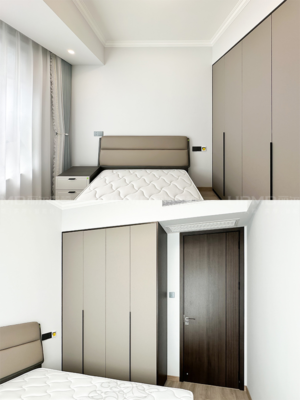 長沙靠譜裝修公司,長沙靠譜全屋定制,臥室衣柜加梳妝臺,現代黑白灰風,