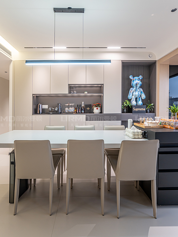 整體簡潔通透,餐邊柜,電視柜增加儲物空間的同時視覺上更干凈整潔