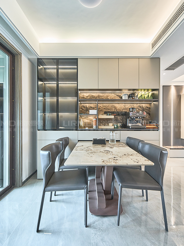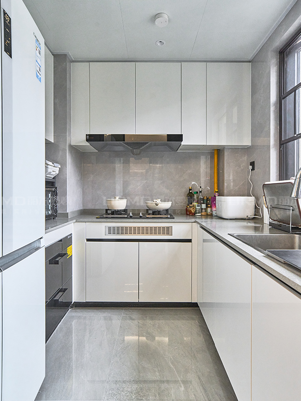U 型櫥柜洗滌區、烹飪區及操作臺等空間劃分極其明確,滿足了使用空間的需求,又減少物品拿取往復的時間