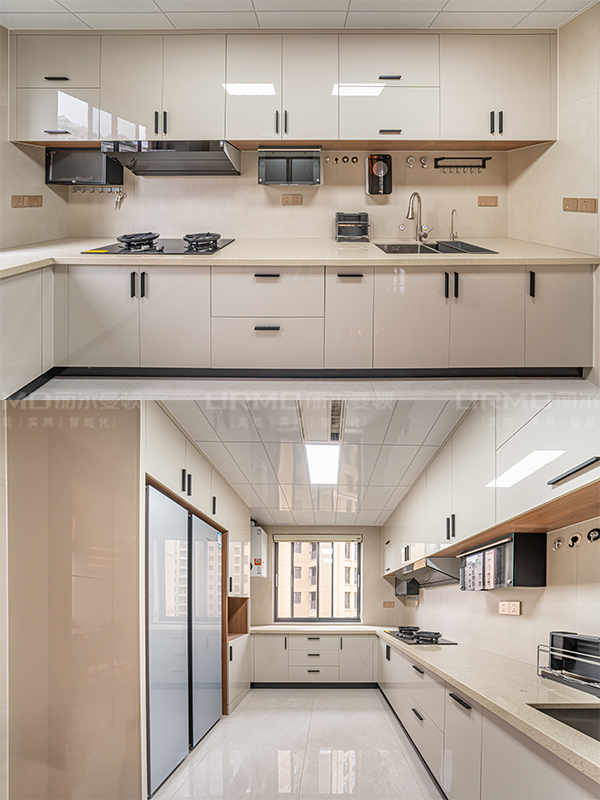 極簡 U 型櫥柜,視覺效果拉滿,區(qū)域設計考慮到了使用使用動線,讓廚房使用更加便利
