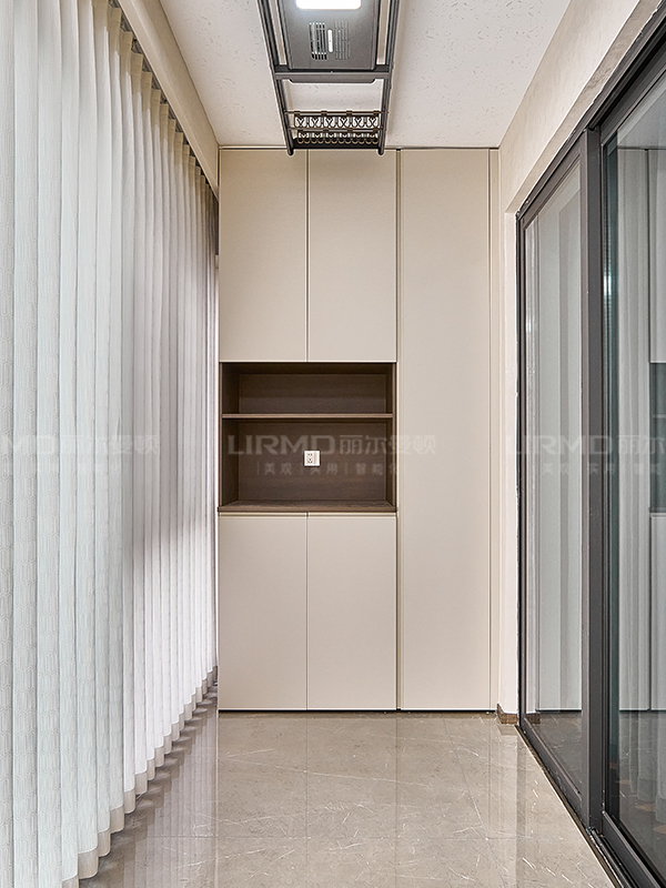 定制柜做圓弧角,避免磕碰受傷。通體型材拉手一門到頂,使用便捷!