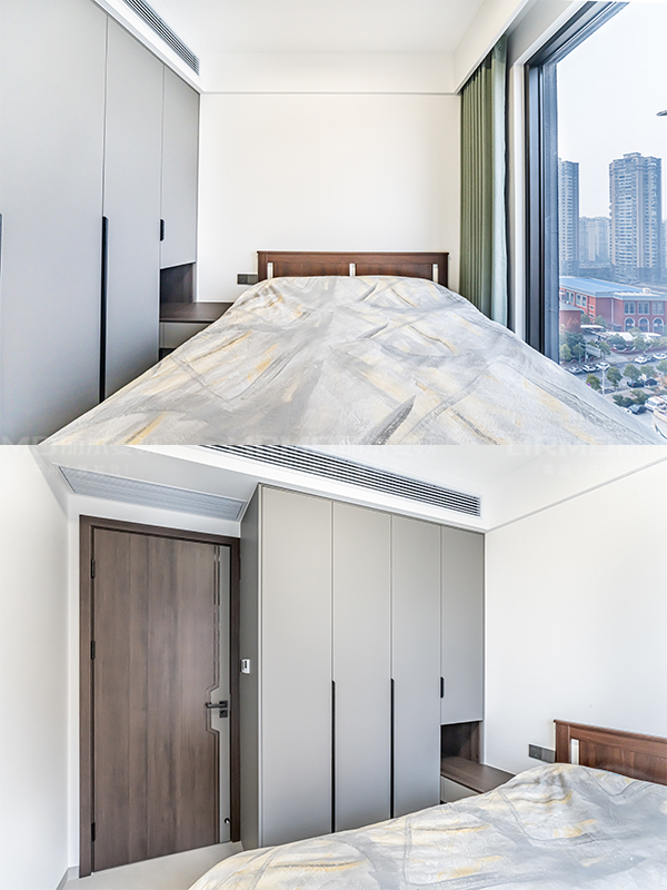木紋護墻板搭配極簡線條設(shè)計,空間以質(zhì)感與奢雅為基調(diào),簡潔的設(shè)計、利落的線條,低調(diào)奢華與精致優(yōu)雅共生
