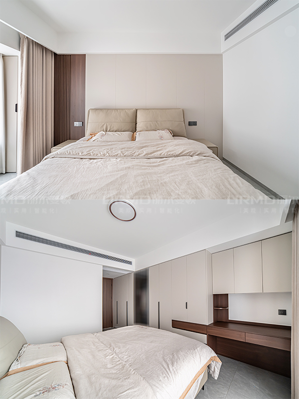 隱形設計:所有門套、踢腳線做極簡收口,連空調風口都定制同色格柵,強迫癥狂喜